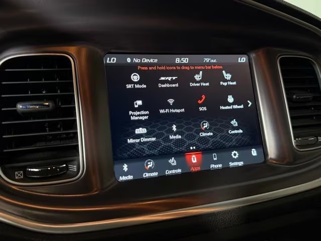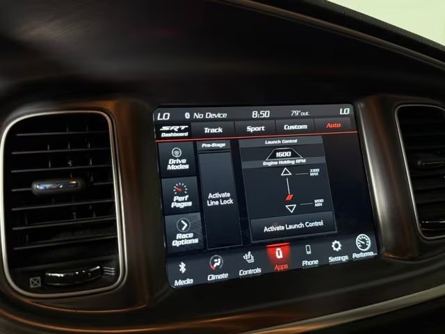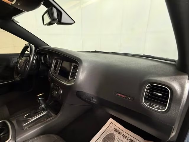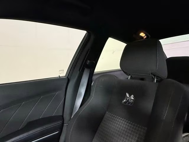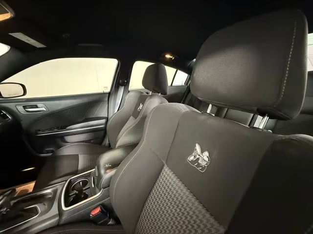 Inside, it seats five comfortably in a spacious cabin, with interior dimensions that include over 104 cubic feet of passenger space. Materials are driver‑focused, with performance cloth seating emblazoned with Scat Pack logos; leather trim is available. The front seats are power adjustable, often heated, with available upgrades in comfort and visibility. Technology includes a touchscreen infotainment interface, smartphone integration, Bluetooth connectivity, and driver‑assist features such as a rear‑view camera and stability/traction control systems. Dual‑zone climate control helps set a more refined ambiance, especially on longer drives.