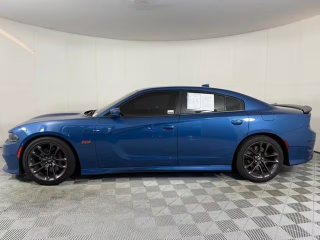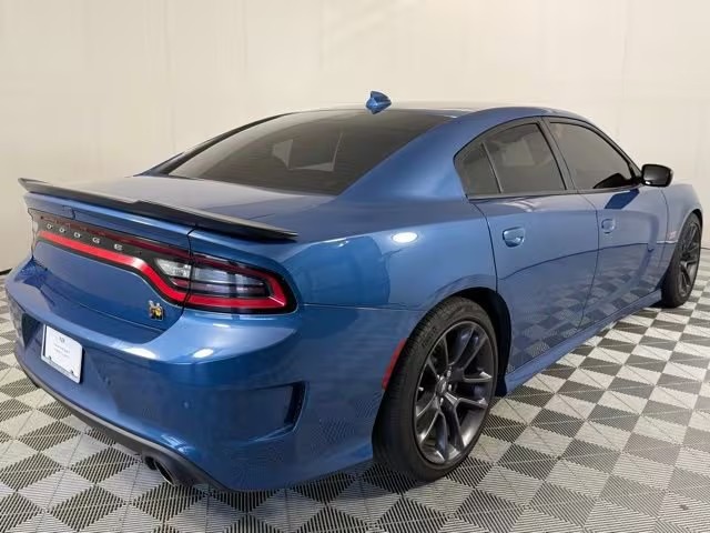 The 2021 Dodge Charger Scat Pack is a full‑size muscle sedan built for those who want bold power, aggressive styling, and a commanding presence on the road. Under its hood sits a 6.4‑liter HEMI V8 engine that generates 485 horsepower and 475 lb‑feet of torque, mated to an 8‑speed automatic transmission. It’s rear‑wheel drive, featuring performance enhancements like Brembo four‑piston brakes, launch control, and a strong dual exhaust note. Acceleration is brisk, with the Charger Scat Pack able to sprint from zero to sixty in about 4.3 seconds.