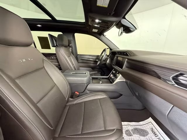 Cargo space is generous: fold down the rear rows and you get well over 140 cubic feet of room in the rear for luggage, gear, or whatever you need to haul. For towing, the Denali XL can pull up to about 7,900 pounds when properly equipped. Ride quality is enhanced with optional adaptive air ride suspension, which helps smooth out bumps and adds comfort. Available features like four‑corner air suspension or Magnetic Ride Control further refine the driving experience.
