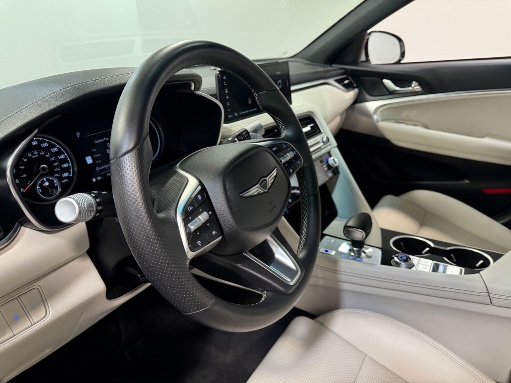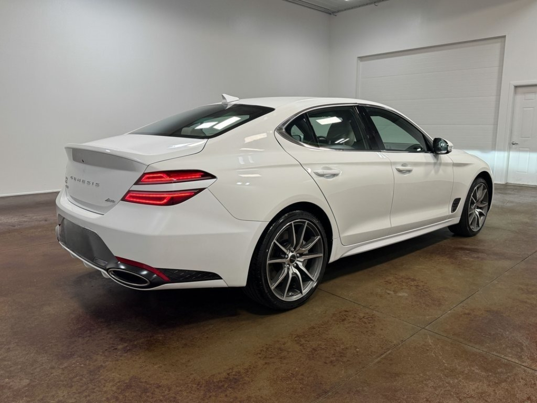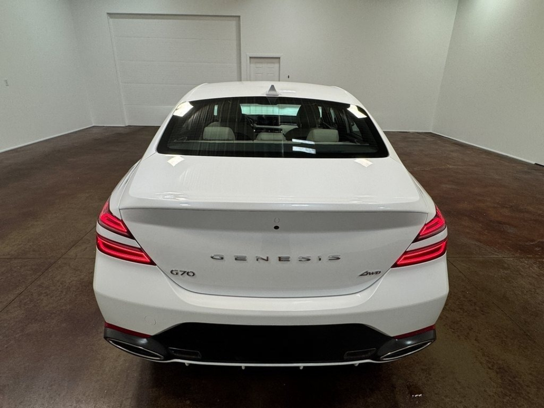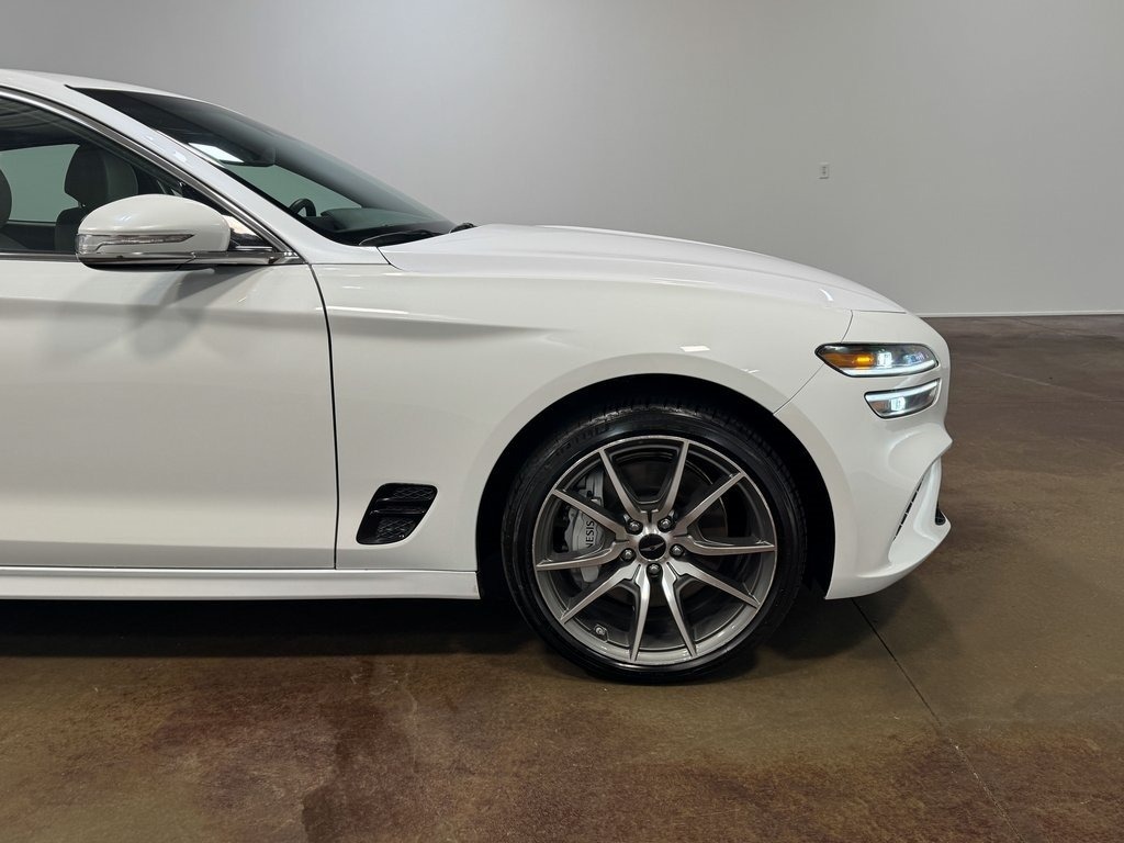 The 2025 Genesis G70 2.5T is a compact luxury sports sedan created for drivers who want an athletic feel wrapped in premium refinement. Its low, sculpted stance and balanced chassis make it far more agile than most sedans in its class. Depending on configuration, it comes in rear-wheel drive or all-wheel drive, with AWD providing enhanced cornering stability and all-weather capability.