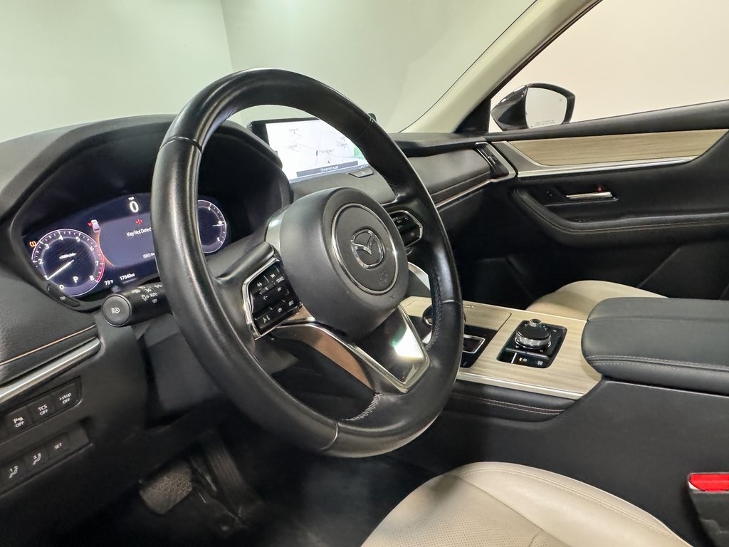 The 2025 Mazda CX-90 3.3 Turbo Premium is a three-row midsize SUV designed with a more upscale approach than previous Mazda models. Its wide stance and rear-biased platform give it a confident road presence, while the cabin emphasizes comfort, craftsmanship, and technology. The all-wheel drive system is standard, helping the CX-90 handle slippery roads and light off-road situations with ease.